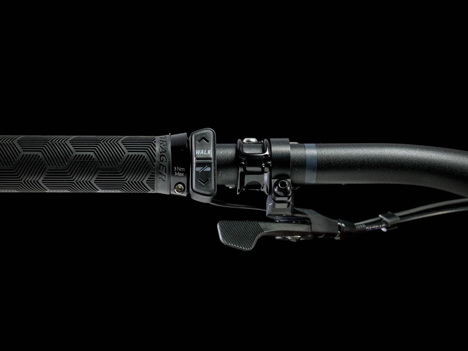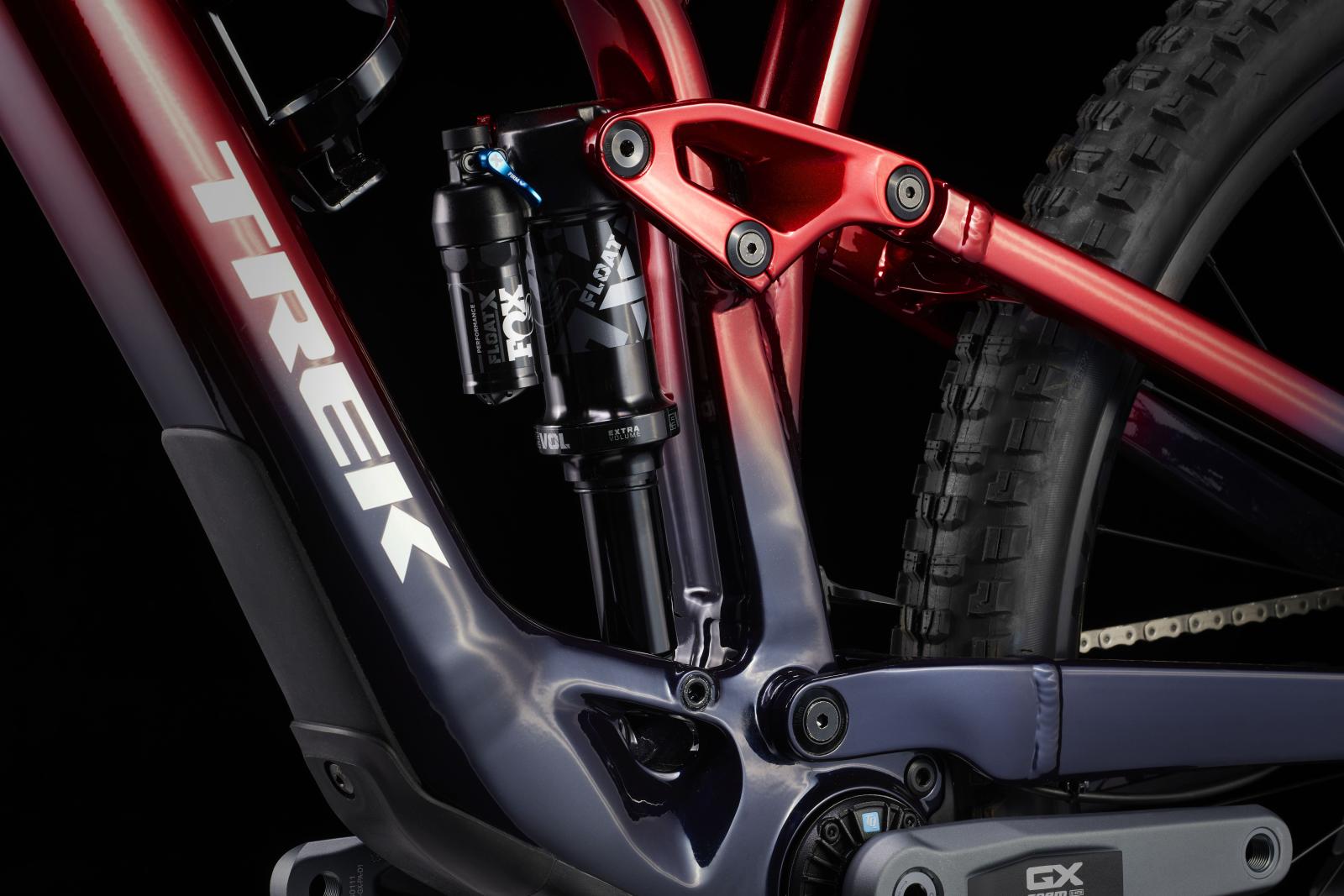 Einen Rahmen aus Alpha Platinum Aluminium mit TQ HPR50 Harmonic Pin-Ring Getriebe mit komplett im Rahmen verbautem, herausnehmbarem 360-Wh-Akku samt smartem Ladeanschluss. Gleichzeitig sorgen ein integriertes LED-Display und eine lenkermontierte Fernbedienung für intuitive Benutzungsfreundlichkeit, während eine FOX Rhythm 36 Gabel mit 150 mm Federweg, Float EVOL Luftfederung und GRIP-Dämpfung und ein FOX Performance Float X Hinterbaudämpfer mit 140 mm Federweg ein hochleistungsfähiges Fahrwerk bilden. Breite Bontrager Line Comp 30 Tubeless-Ready-Laufräder, SRAMs drahtlose GX AXS 12fach-Transmission, hydraulische Scheibenbremsen